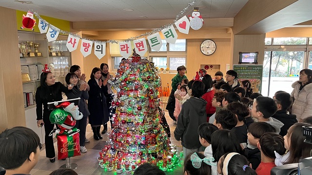 도봉구(구청장 오언석) 한 초등학교에서 라면으로 만든 트리가 화제다.